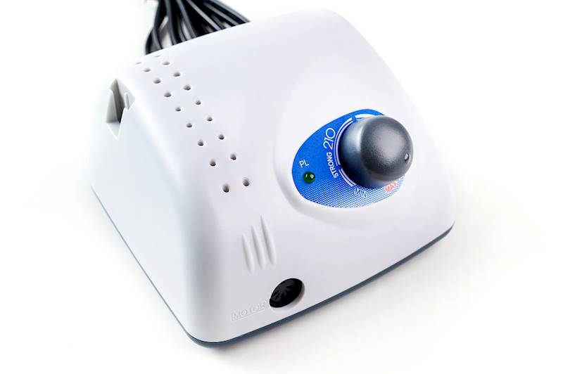 Baza frezarki Strong 210 do pedicure/ manicure posiada ergonomiczną budowę, charakteryzuje się dużą wytrzymałością i niezawodnością pracy. Adapter frezarki posiada 18 otworów na frezy oraz uchwyt uchwyt na rękojeść.
