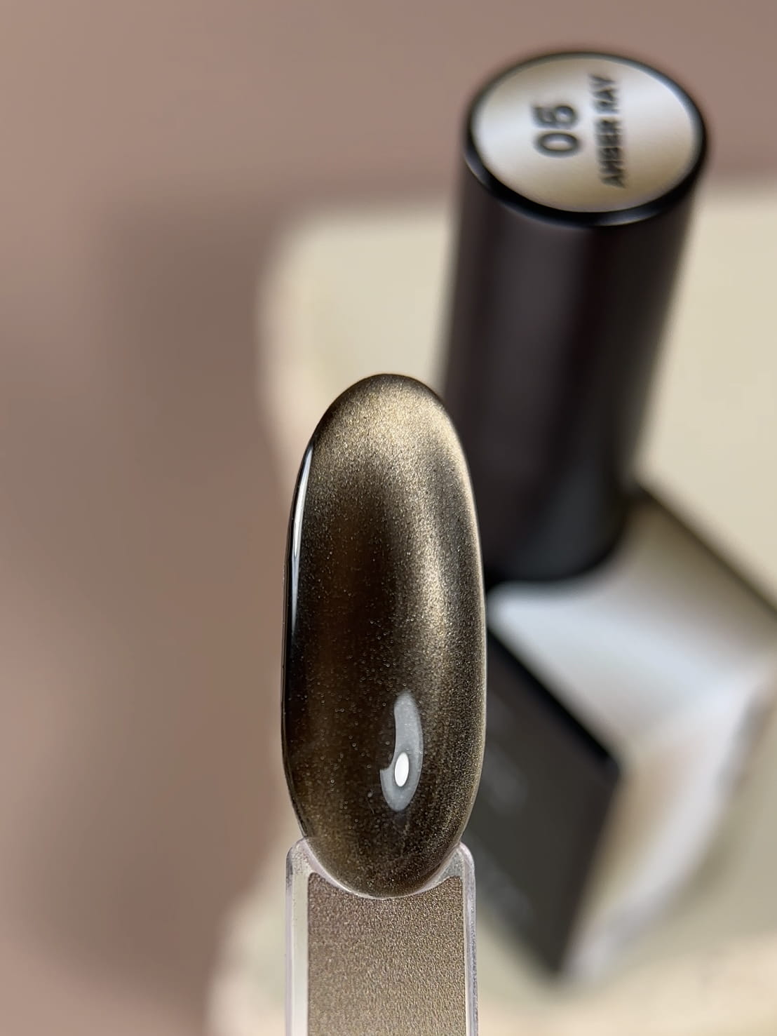 BIBLIOTEKA Cat Eye Gel Polish 05 Amber Ray, 10 ml - złoto-bursztynowy lakier hybrydowy z efektem „kocie oko”