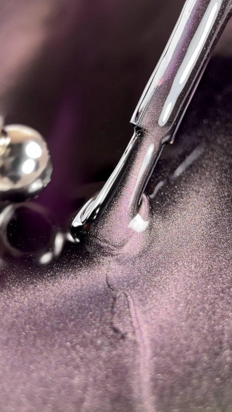NIGHT RAYS – ciemna kolekcja odcieni magnetycznych, w której wiązka światła ujawnia się poprzez głębię koloru. W przeciwieństwie do RAYS, tutaj światło nie jest miękkie i rozproszone, lecz kontrastowe – wyłania się z ciemności, tworząc wyraźny kierunek i napięty ruch. Paleta oparta jest na nocnych barwach: chłodne srebrzyste, ciemnoszare, niebieskie, szmaragdowe, bursztynowe, brązowe oraz winno-śliwkowe. NIGHT RAYS – światło, które pojawia się tylko w głębi koloru. Odcienie kolekcji: 01 Moon Dust – chłodne srebrzyste światło 02 Shadow – głęboki ciemnoszary 03 Midnight – nocny niebieski 04 Forest Beam – szmaragd z refleksami 05 Amber Ray – ciepły bursztynowy 06 Cocoa Light – miękki ciepły brąz 07 Wine Flare – winny z efektem świetlnego rozbłysku 08 Plum Glow – śliwkowy blask Zalety: • Nasycone ciemne odcienie – zapewniają pełne krycie już od pierwszej warstwy. • Możliwość aplikacji bez podkładu – dla szybkiego i głębokiego efektu. • Różne techniki pracy – możliwość nakładania dwóch warstw dla zwiększenia intensywności koloru. • Praca na różnych bazach – aplikacja na czarną bazę dla maksymalnego kontrastu lub na bazę w kolorze „kociego oka” dla delikatniejszego efektu. • Kontrastowa wiązka światła – wyraźnie widoczna na ciemnej bazie. • Pigment magnetyczny – pozwala kontrolować kierunek i kształt światła. • Średnia konsystencja – stabilna i łatwa w kontroli podczas pracy. • Bezpieczna formuła – bez TPO. Parametry techniczne: • Typ: lakier hybrydowy magnetyczny (efekt „kociego oka”) • Konsystencja: średnia • Pigmentacja: średnia • Elastyczność: średnia • TPO FREE • Warstwa dyspersyjna: z warstwą lepką • Polimeryzacja: LED – 60 s / UV – 120 s • Pojemność: 10 ml × 8 Sposób użycia: 1. Przed użyciem dokładnie wymieszać produkt, aby równomiernie rozprowadzić pigment magnetyczny. 2. Nałożyć cienką lub średnią warstwę na przygotowaną bazę. 3. Przed utwardzeniem uformować efekt światła za pomocą magnesu. 4. Utwardzać: LED – 60 sekund / UV – 120 sekund. 5. Zabezpieczyć topem CLEAR no uv lub dla efektu matowego użyć FOG top. Środki ostrożności: Unikać kontaktu ze skórą. Przechowywać w szczelnie zamkniętym opakowaniu w temperaturze od +5°C do +25°C. Trzymać z dala od dzieci i bezpośrednich źródeł światła. Produkt jest wrażliwy na promieniowanie UV/LED – podczas pracy lub tworzenia treści nie pozostawiać otwartego pod lampą lub na słońcu, aby uniknąć przedwczesnej polimeryzacji. Stosować wyłącznie zgodnie z instrukcją.