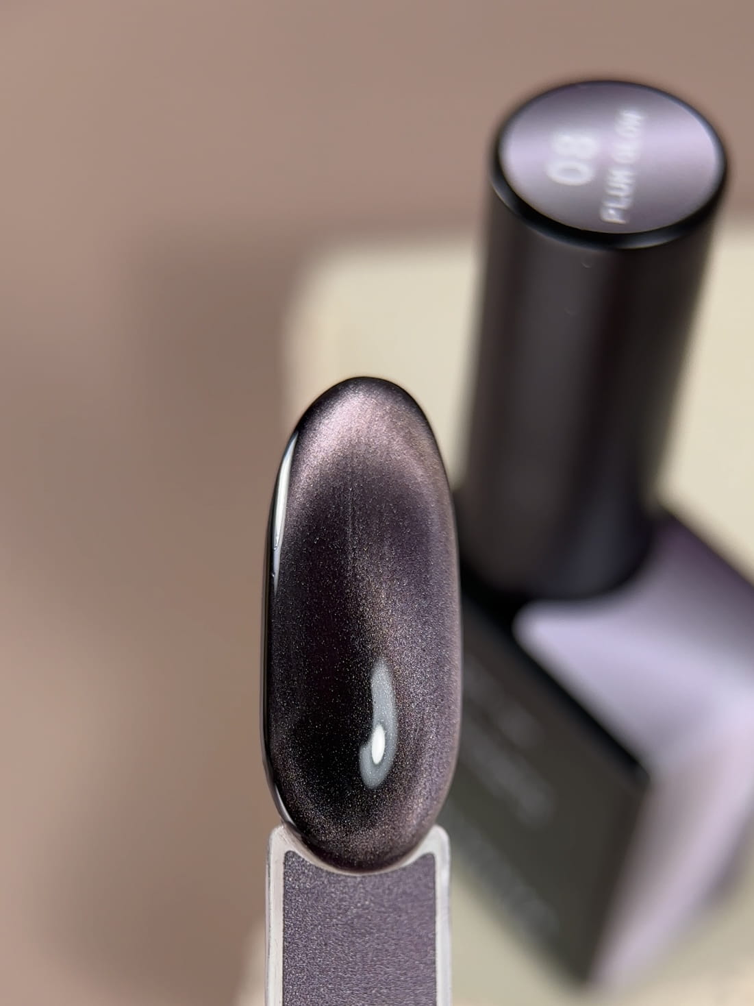 BIBLIOTEKA Cat Eye Gel Polish 08 Plum Glow, 10 ml - ciemnośliwkowy lakier hybrydowy z efektem „kocie oko”