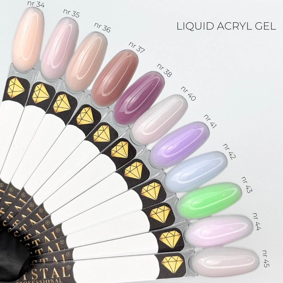Liquid Acryl Gel Crystal Professional - Płynny żel akrylowy może być stosowany do wszystkich typów paznokci. Nadaje manicure jeszcze większą wytrzymałość i długą trwałość. Ze względu na swoją konsystencję (podobną do gęstej bazy) materiał jest łatwy w aplikacji i rozprowadzaniu. Cechy: