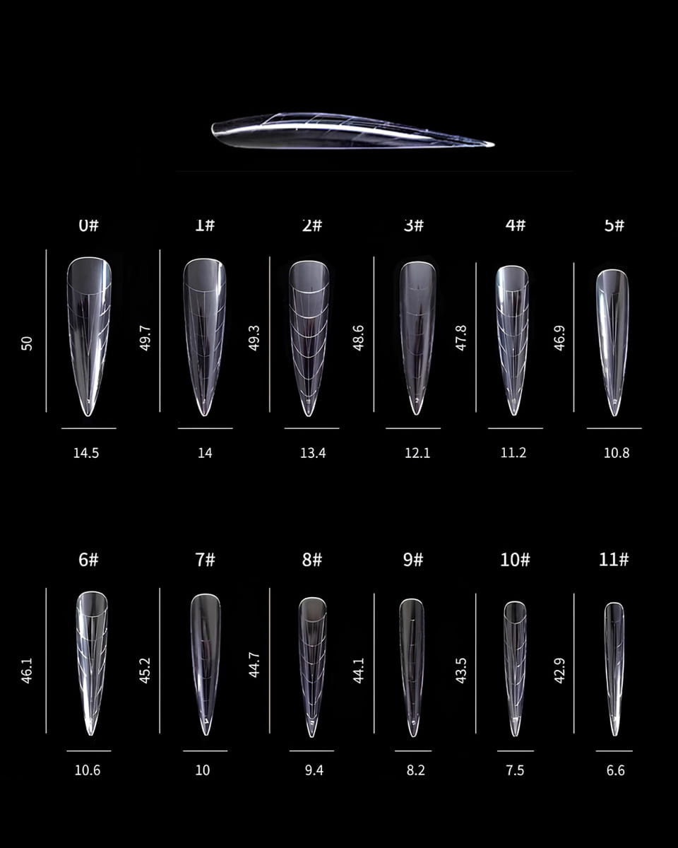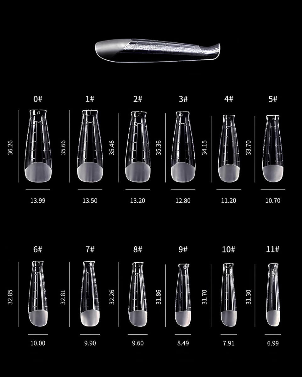 12 rozmiarów tipsów - każdy z numerem seryjnym;