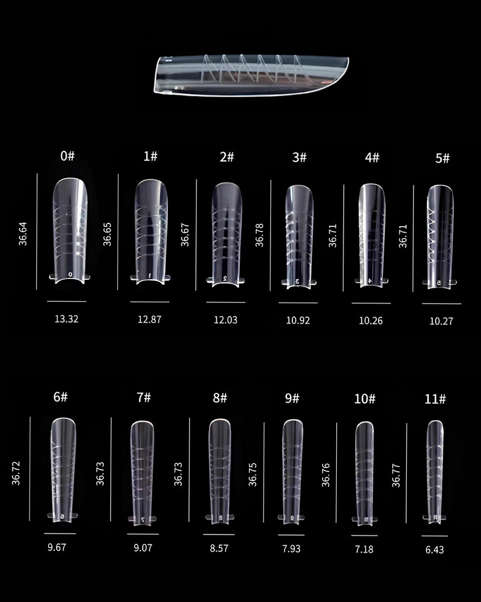 12 rozmiarów tipsów - każdy z numerem seryjnym;