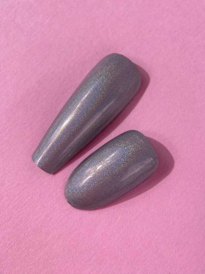 - Efekt holograficznych drobinek pojawia się po 1 minucie od nałożenia przed utwardzeniem.