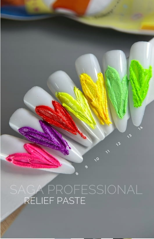 Saga Relief Past to wyjątkowa kolekcja pasty do zdobień. Stworzona z myślą o tych, którzy chcą realizować swoje najbardziej śmiałe pomysły i dodać paznokciom niezwykłej objętości.
