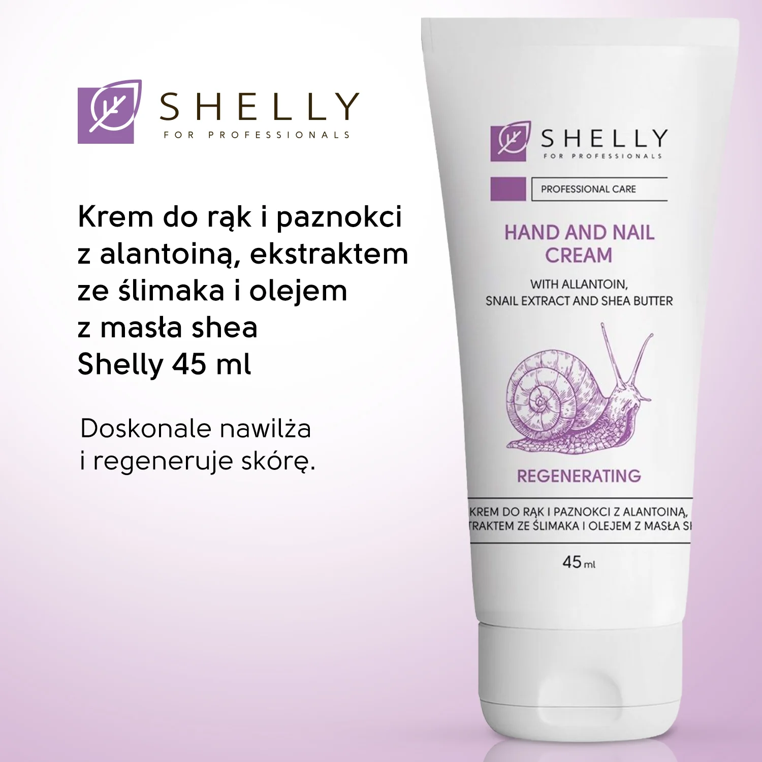 Shelly Hand & Nail Cream wzbogacony alantoiną, ekstraktem ze ślimaka i masłem shea, aby zapewnić intensywne nawilżenie, odżywienie i regenerację. Delikatna konsystencja szybko się wchłania, pozostawiając skórę miękką, aksamitną i odmłodzoną.
