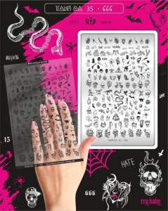 W zestawie z płytką znajduje się LISTA DEMO - przezroczysty szablon do przymierzania gotowych wzorów na paznokciach klientki!Lakier można łatwo oczyścić z arkusza demonstracyjnego za pomocą acetonu.